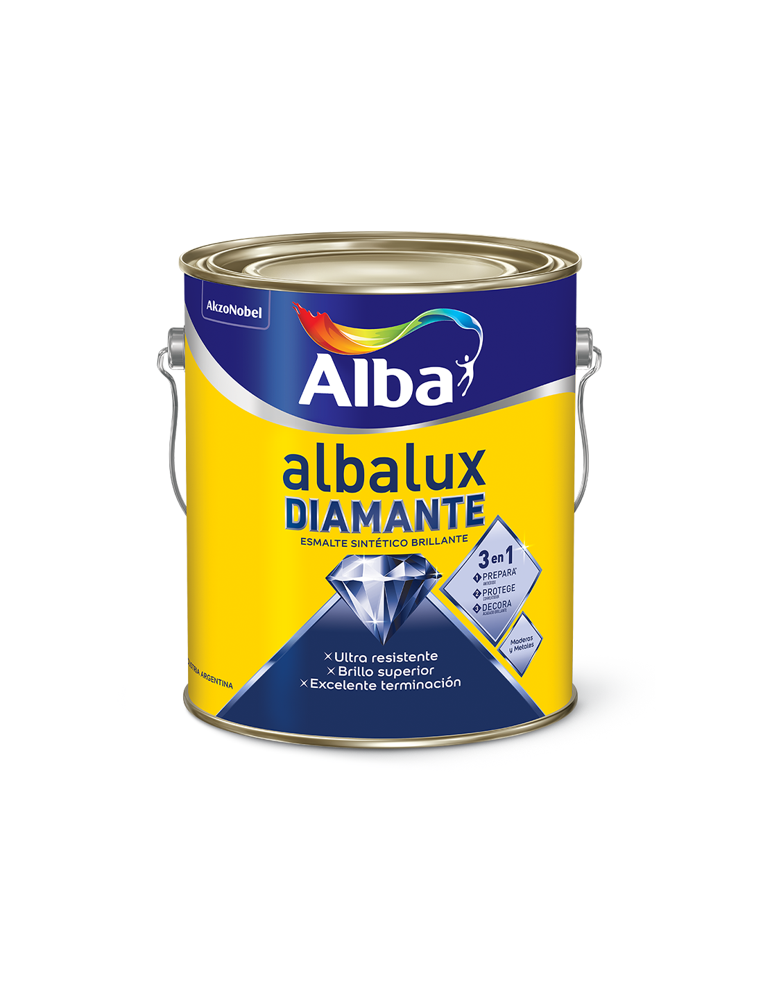 Albalux DIAMANTE 3 en 1 con inhibidor de corrosión, es un esmalte sintético de calidad premium de brillo superior. Además, su exclusiva formulación, brinda protección antióxido y convertidor. De fácil aplicación, excelente pintabilidad y nivelación. Acabado: Brillante Cobertura: 12 a 15 m2 por litro y por mano Tiempo de secado: Secado al tacto: 3 a 5 horas Secado entre manos: 8 horas Capas: 2