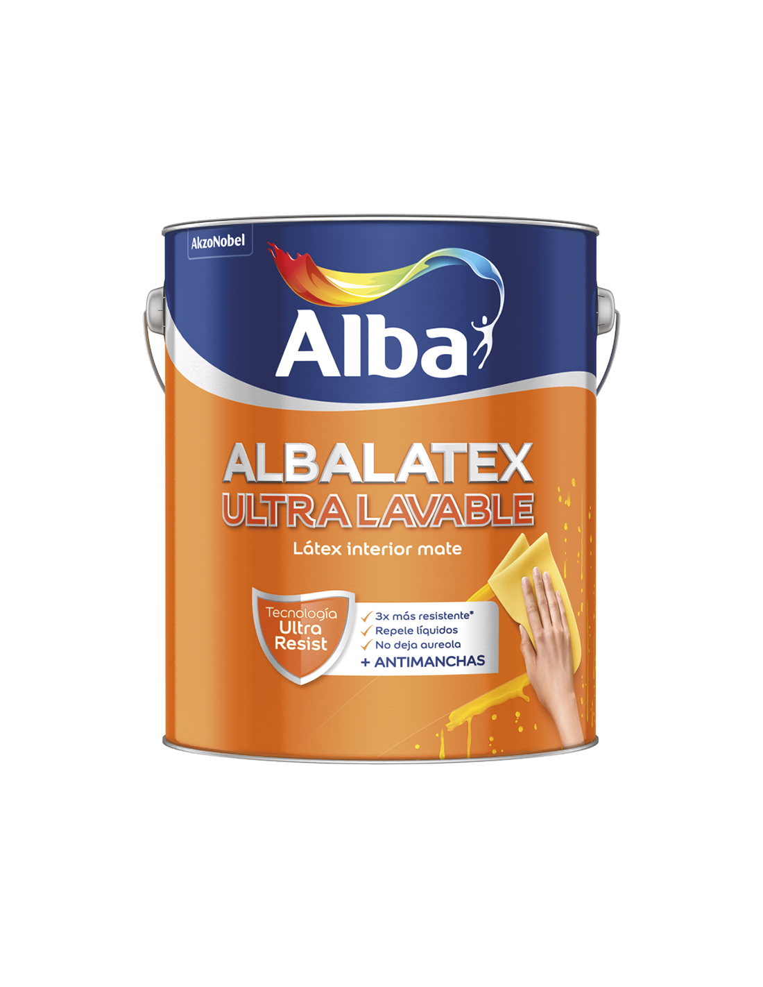 Látex para Interiores mate de alto desempeño y durabilidad. Gracias a su innovadora TECNOLOGÍA ULTRA RESIST, es 3 veces más resistente al lavado (*), antimanchas, repele líquidos y no deja aureola. Fácil de limpiar